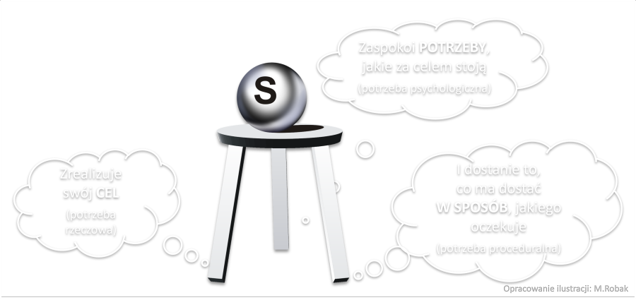 Nad dwoma pierwszymi elementami (celem i zaspokojeniem potrzeb) możemy pracować w ramach działań rozwojowych dla sprzedawców oraz doskonaląc proces sprzedaży. Budując standardy obsługi Klienta skoncentrujemy się głównie na ostatnim punkcie.